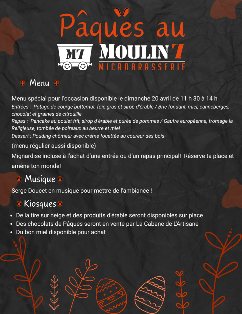 • Menu « sucré-salé » spécial pour l’occasion. Le menu régulier est aussi disponible